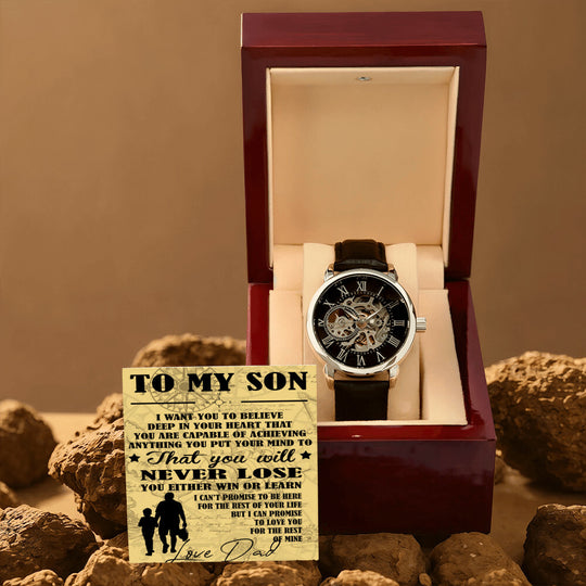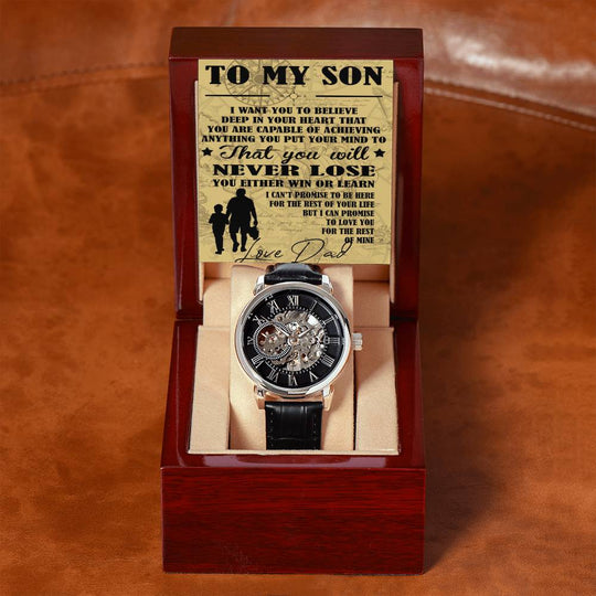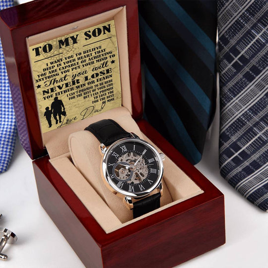 Give the gift of luxury with this handsome and daring timepiece. The Men's Openwork Watch is the perfect blend of classic design and modern styling, making it an essential accessory for your remarkable style. This watch...Sale price $149.95Regular price $299.95 -