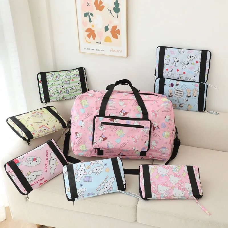 Sanrio Hello Kitty Travel Bag Cinnamoroll Keroppi Cartoon Foldable Water Proof Luggage Bag Clothing Storage Bag High Capacity