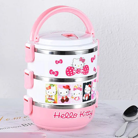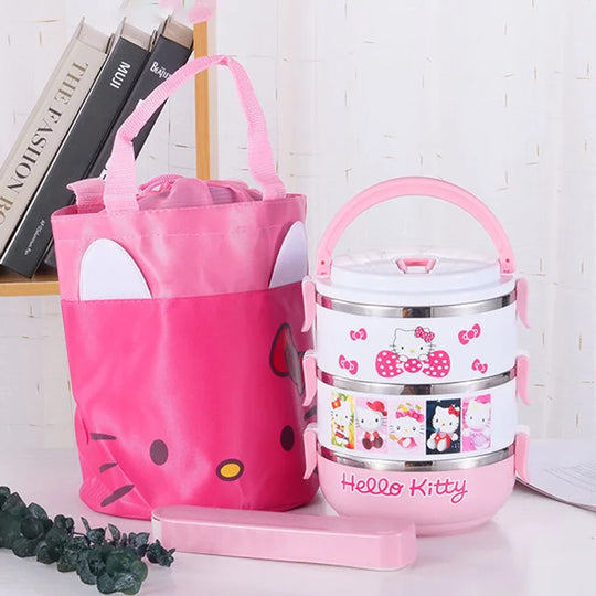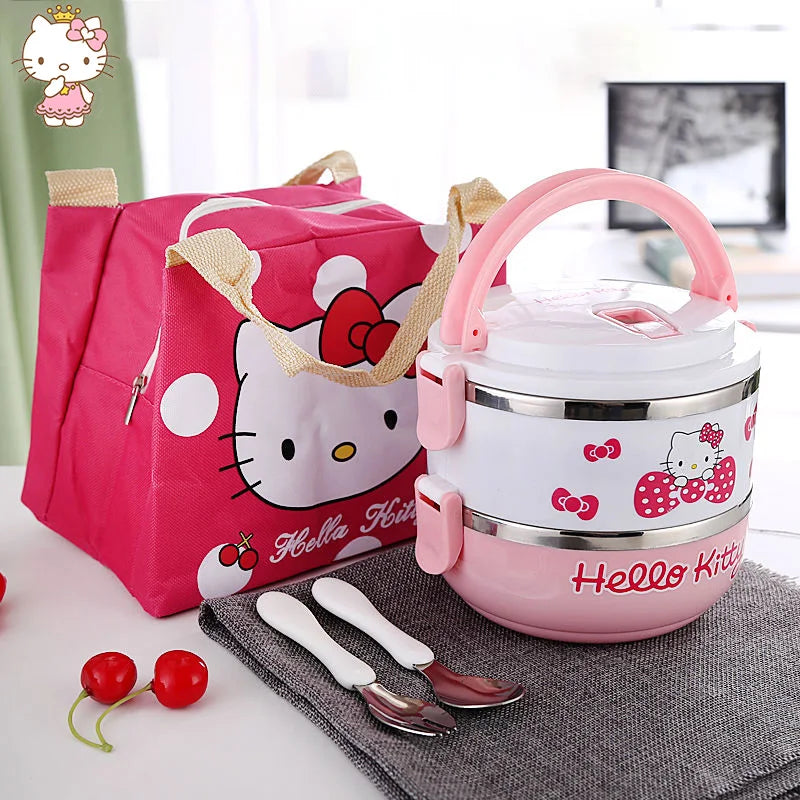 Miniso Hello Kitty Lunch Box Cartoon Cute Bilayer Three Layers Office Student Heat Preservation Single Layer Lunch Box Girl Gift