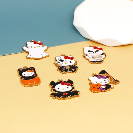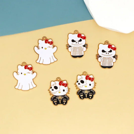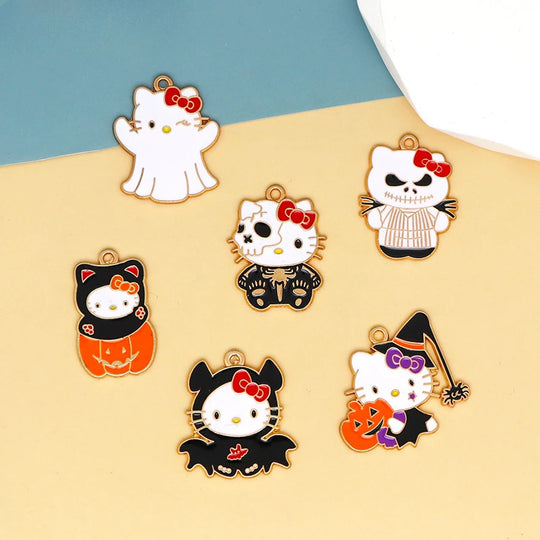 Sanrio Halloween Cartoon Hello Kitty DIY Accessory Demon Ghost Kitty Bag Ornament Necklace Bracelet Earrings Keychain Pendant